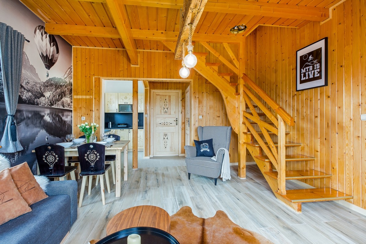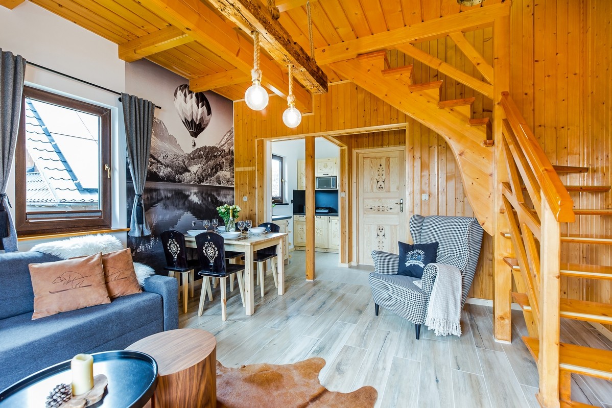Wolnostojący domek z tarasem o pow. 60m2.Wykończony  w góralskim stylu w bardzo dobrym standardzie. Idealny dla max. 6 osób.